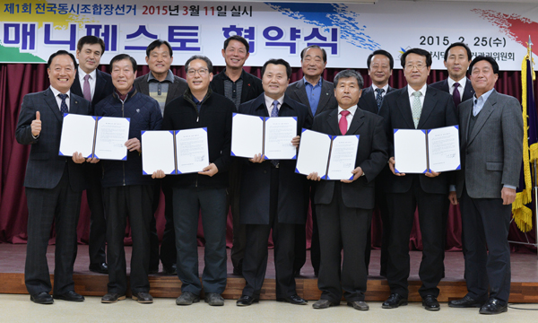 다음달 3월 11일 열리는 제1회 전국동시조합장선거의 매니패스토 협약식 및 기호 추첨이 덕양구·일산서구선거관리위원회에서 오후 6시에 있었다. 협약식에서 덕양구선관위 이대훈 사무국장은 “큰 사고 없이 조용하게 선거운동을 해 나가시길 바라며 좋은 선거가 될 수 있도록 노력해 달라”고 전했다.