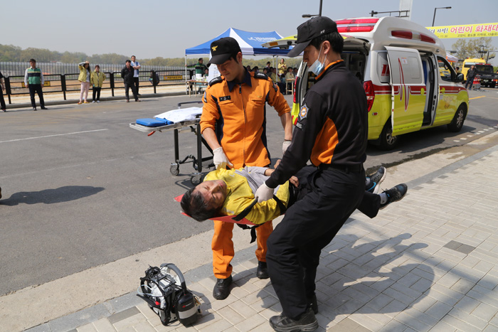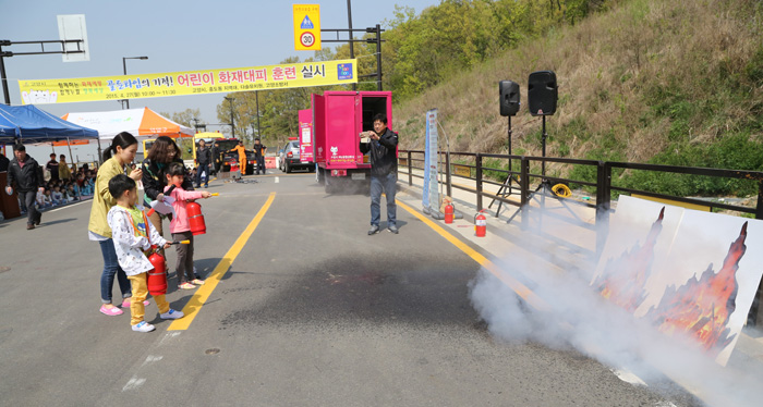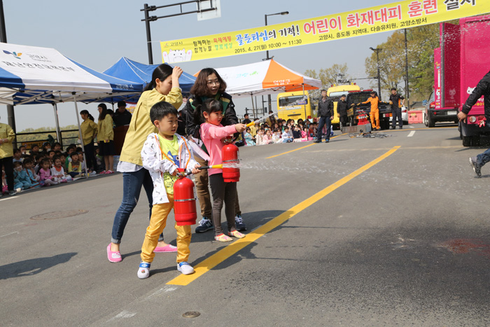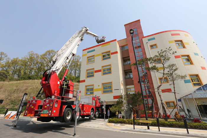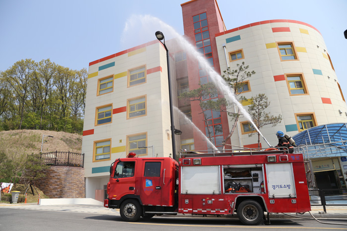 이날 훈련은 순간적인 판단력이 부족한 어린이들의 행동 특성을 감안한 눈높이 화재대피 훈련으로 신속대피, 화재진화, 응급구조 과정들이 고양소방서 대원들과 함께 현장감 있게 진행됐다. 교사와 함께 건물 외부로 대피한 어린이들은 계속되는 훈련을 지켜보며 화재가 어떤 것인지 실감했다. 화재진압 대원들의 소방호스 사용, 응급처치팀의 부상자 구출, 사다리차를 이용한 옥상 대피자 구조 시범이 차례로 진행됐고, 이후에는 어린이들이 소화기 사용법과 심폐소생술을 직접 체험해 보는 기회도 가졌다.