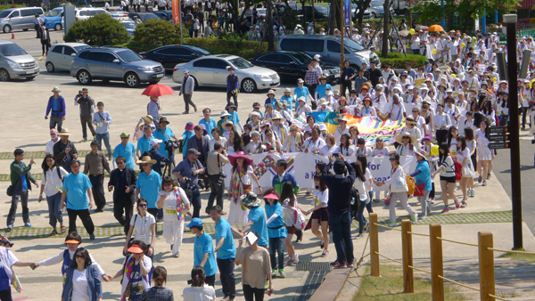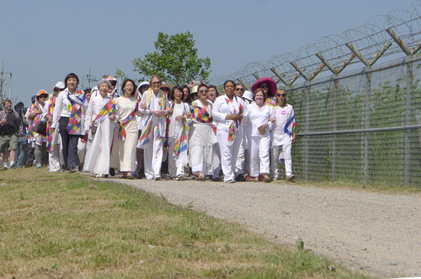 이날 세계적 여성운동가 글로리아 스타이넘, 노벨평화상 수상자 리마 보위, 메어리드 코리건 맥과이어를 비롯한 15개국에서 모인 30여명의 WCD 대표단은 경의선 육로를 통해 남북 비무장지대(DMZ)를 통과한 뒤 통일대교 남단에서 한국 참가자들과 만나 임진각 평화누리공원에 마련된 행사 무대까지 행진했다<사진>.