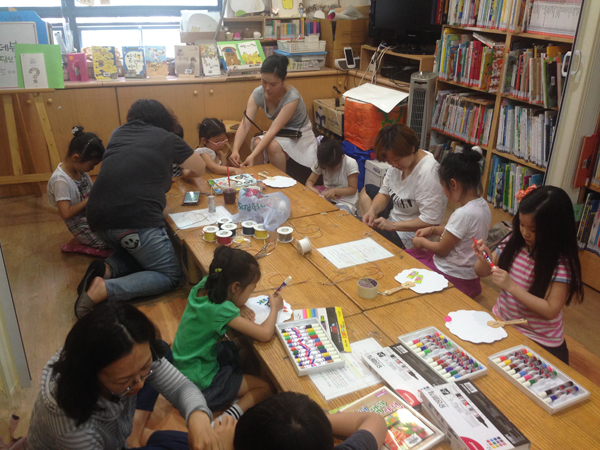 25일 취재를 위해 찾은 행신동 느티나무도서관은 때마침 단오맞이 행사준비로 왁자지껄한 분위기였다. 아이들은 장명루 팔찌와 단오 부채 만들기에 한창이었으며 맞은편에서 엄마들은 바람떡, 화채 등 먹거리 준비에 여념이 없었다.