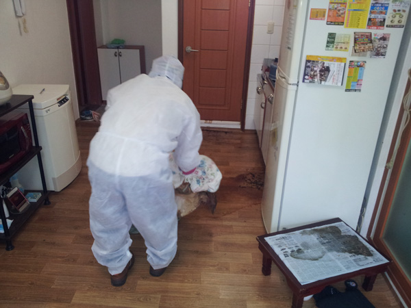 “일이 쉽지만은 않습니다. 대부분의 고독사가 그렇듯 현장은 사망 후 한참 뒤에서야 시신의 부패냄새로 이웃에게 알려집니다. 시신이 치워진 후에 직원들이 방문하지만 냄새는 남아 있습니다. 부패된 이불과 옷가지는 2중3중으로 비닐로 포장한 뒤 곧바로 소각장으로 갑니다. 시멘트에 남은 분비물 등을 정리할 때는 벽과 바닥을 허물고 다시 시공하는 경우도 생기죠.”