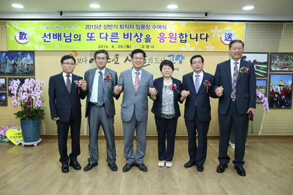지난 29일 고양시청 시민컨퍼런스룸에서 상반기 공무원 정기퇴임식이 열렸다. 정순하 시민안전교통실장, 정동일 여성가족국장, 허신용 민생경제국장, 이훈경 시민복지국장, 이양천 고양시도서관센터장 등 명예퇴임자를 비롯한 18명은 이날 가족들과 후배공무원들의 축하와 격려 속에 공직생활을 영예롭게 마무리 했다.
