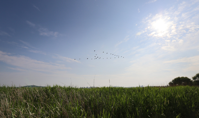 철새 도래지인 장항습지는 겨울에 장관을 이루지만, 여름에도 이따금 여름철새들이 무리를 지어 나는 모습을 볼 수 있다.