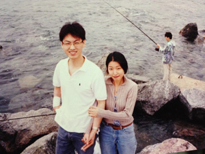 부부는 결혼식 후 부모님 도움으로 작은 집을 따로 얻어 살았다. 결혼을 해서도 떨어져 일하고 싶지 않았던 남편은 연애시절부터 하던 조립컴퓨터 판매사업을 접고 아내의 회사에 취직해 얼마 동안 같이 일했다. 그러다 아내가 임신으로 직장을 그만 두면서 남편은 집 근처에서 당시 호황이던 비디오 가게를 열었다.