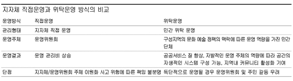 문제점은 지속 가능한 운영규칙의 마련이 필요하며 운영비용에 대한 의존율이 증가해 고양시의 부담이 가중되고 있다. 따라서 앞으로의 사업은 민간이 주도하는 자발적인 전문 운영주체를 발굴해 지속 가능한 공간 활용방안을 도출해야 한다. 자체 운영이 가능하도록 수익 창출 여부도 검토해야 한다.