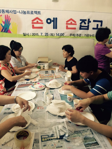 가온누리 나눔연구회는 2013년 백석동에 가온누리 심리상담센터가 만들어지면서 모임을 시작하게 됐다. 7명의 사회복지 연구자들이 참여하는 이 모임은 나눔과 소통을 통해 개인의 정체성 확립과 자존감 향상을 도와 행복하게 더불어 사는 것을 비전으로 한다. 모임 대표를 맡고 있는 하선희씨는 “사회복지 공부를 하면서 나눔을 어떻게 실천할 것인가 함께 고민하던 차에 올해 자치공동체사업에 지원하게 됐다”고 사업취지를 밝혔다.