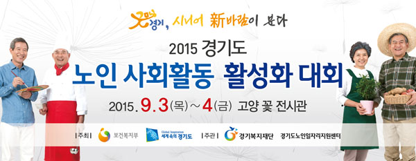 경기도와 경기복지재단 경기도노인일자리지원센터는 노인 사회활동지원 사업의 정보교류와 일자리 창출에 대한 사회적 분위기 확산을 위해 9월 3일과 4일 고양꽃전시관과 야외전시장에서 ‘2015 경기도 노인 사회활동 활성화대회’를 개최한다.