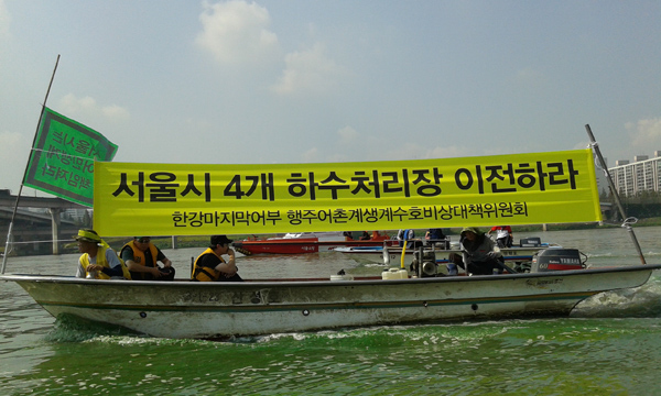 박찬수(57세) 행주어촌계장은 “서울시에는 한강에 4개(난지·서남·탄천·중랑)의 하수처리장이 있다. 이곳에서 기준을 초과한 처리수를 방류하기 때문에 녹조가 생기고, 한강 수질에 대한 부정적 인식 때문에 물고기가 아예 팔리지 않는 실정”이라고 말했다.