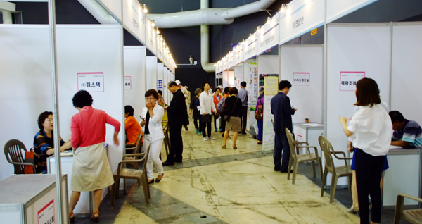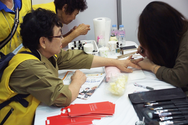 이외에도 노인들이 직접 경험해볼 수 있는 다양한 활동들과 실질적으로 유용한 서비스들을 제공하는 부스들도 마련됐다<사진>. 한궁체험 등의 게임, 떡메치기·짚풀공예, 무료 이력서 사진 촬영, 혈압검사, 치매예방 프로그램 등도 참가자들의 발길을 끌었다. 20개의 구인업체가 60세 이상의 노인을 대상으로 10개의 부스를 운영하기도 했다.