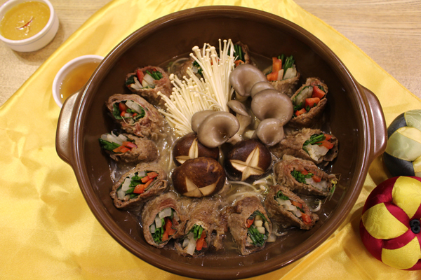 고 양은 소고기 설도 부위를 구운 후 쪽파, 무, 파프리카를 넣고 말아서 표고, 느타리, 팽이버섯, 육수 등을 넣고 특색 있는 전골을 만들어 심사위원들로부터 높은 평가를 받았다.