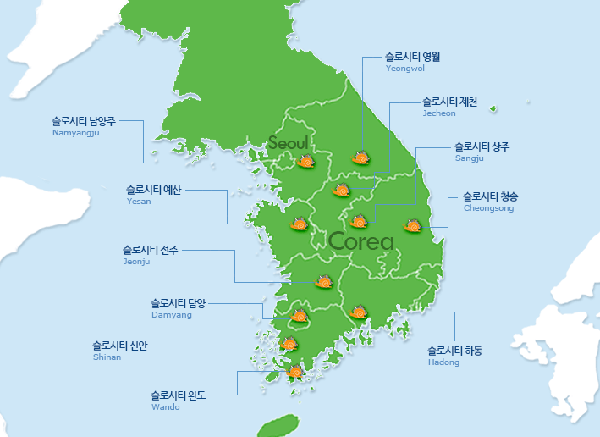 2010년 세계 20개국 135곳이던 슬로시티는 5년 만에 회원 도시가 급속도로 늘어 2015년 6월 기준 30개국 200개 도시가 됐다. 우리나라에선 전남 4개 군(2007년 가입)을 시작으로, 2012년 마지막으로 가입한 영월과 제천까지 포함 11개 지역이 국내 슬로시티로 가입돼 있다<표 참고>.