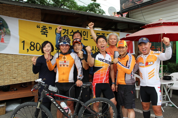 “오직 친구만 생각하며 여기까지 왔다”는 이경수 원옥미가든 능이버섯백숙 대표. 그는 55세의 나이에 산악자전거(MTB)로 지난 9월 1일 새벽 5시 법곳동을 출발해 국토종주를 한 후 9월 23일 저녁에 다시 법곳동에 도착했다.