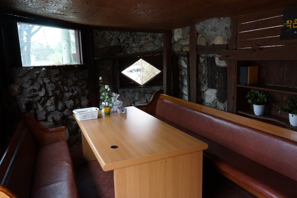비젠온천에서 중고개 방향으로 조금만 더 가면 아름다운 휴식공간인 '사마리아 쉼터'가 나타난다. 작은 교회에서 한북누리길을 걷는 이들을 위해 마련해놓은 휴식공간이다. 안으로 들어서면 십여명이 넉넉히 둘러앉을만한 테이블이 있다. 쉼터 안쪽에는 커피잔이 놓인 진열장과 함께 정수기와 커피포트를 갖춰놓아 각자 원하는 종류의 커피와 차를 셀프로 즐길 수 있도록 했다. 일회용 티슈도 제공되고 쉼터 옆의 화장실도 항상 개방되어 있다. 몇 번을 들러도 늘 아무도 만나지 못했지만, 언제나 정돈된 모습으로 찾는 이의 마음을 따뜻하게 맞아준다. 몸과 맘을 촉촉이 채운 뒤 테이블 위에 마련된 메모지에 고마움의 인사를 두어 줄 남겨보면 건 어떨까. 공간을 가꾸는 이의 흐뭇한 미소를 상상하며 말이다.