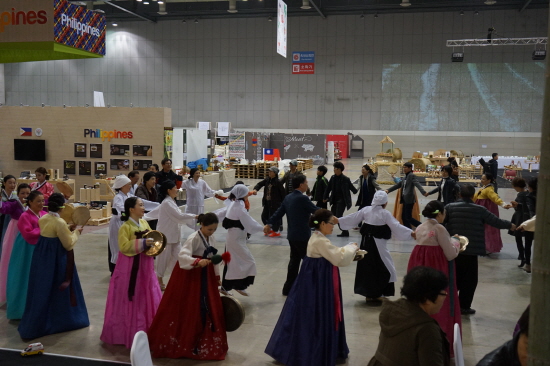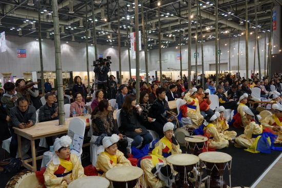 킨텍스의 넓은 전시장에 두렛소리와 아리랑 가락이 울려퍼졌다. 경기도 무형문화재 제22호인 고양송포호미걸이보존회(회장 조경희)가 주최하고 고양가와지 문화예술원이 주관한 제10회 고양 송포 가와지볍씨축제가 지난 21일 킨텍스 제2전시관 9홀에서 개최되어 3시간 가까이 구성지면서도 신명나는 공연을 선보였다. ‘5020 가와지볍씨 아리랑 소리로 이어가리!’라는 캐치프레이즈를 내건 이번 공연은 세계 각국의 손님들이 참가한 2015 슬로푸드국제페스티벌 프로그램의 일환으로 기획되어 예년의 행사에 비해 규모와 내용면에서 더욱 성대하고 다채로운 면모를 보여주면서 관객들에게 큰 박수를 받았다.