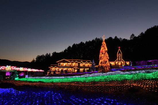 동화같은 크리스마스의 낭만 속에 빠져보고 싶으면 포천 허브아일랜드로 가보자. 불빛 동화축제의 컨셉은 ‘산타 마을에서의 로맨틱 라이팅 쇼’다. 매일 저녁 5시 30이면 어김없이 산타가 사는 마을을 배경으로 환상적인 불빛 퍼포먼스가 로맨틱한 멜로디와 함께 펼쳐진다. 크리스마스 리스, 트리, 쿠키와 컵케이크 만들기 체험도 즐길 수 있고, 산타선물꾸러미, 성탄마차타기와 같은 행복한 이벤트도 준비되어있어 온 가족이 멋진 추억을 만들 수 있다. 부부나 연인들에게는 폭포정원에 꾸며진 백만송이 로즈가든이 인기다. 최근 인기리에 방영된 TV 드라마의 촬영무대로도 유명세를 타서 깜짝 프로포즈를 연출하는 이들이 줄을 잇고 있다. 차가운 겨울을 따스한 온기로 채워주는 불빛의 향연을 보노라면 아름다운 동화가 눈 내리는 북구에서 많이 만들어지는 이유를 알 것도 같다.