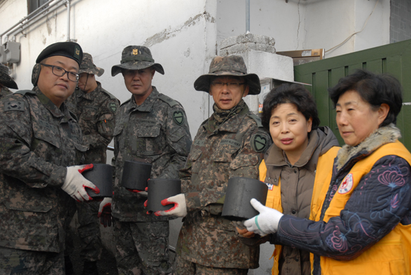지난 9일, 덕양구 덕은동의 좁고 가파른 골목에 30사단 공병대대 장병들 50여 명이 줄지어 서서 연탄을 날랐다<사진>. 2015년 여름에 개최했던 30사단 군장병들 체육대회 때 먹거리장터를 운영해 마련한 수익금으로 쌀·라면·연탄을 구입해 지역 어르신들의 따뜻한 겨울나기를 위해 봉사한 것이다.