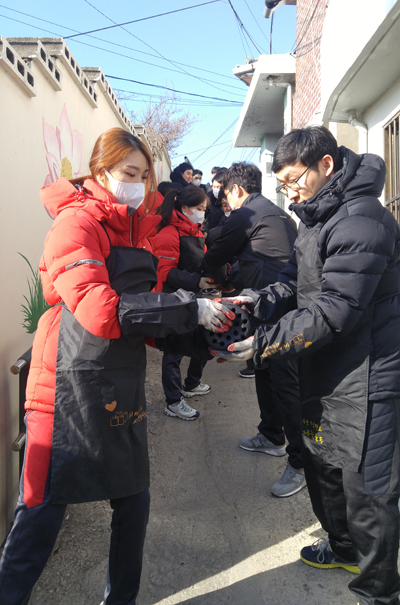 배달 꺼리는 가파른 골목서 농협은행 신규직원 연탄봉사