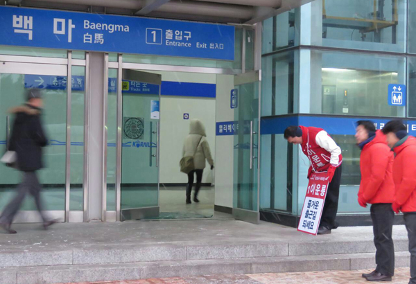 백마역에서 피켓인사… “눈이 와도 상관없어요”
