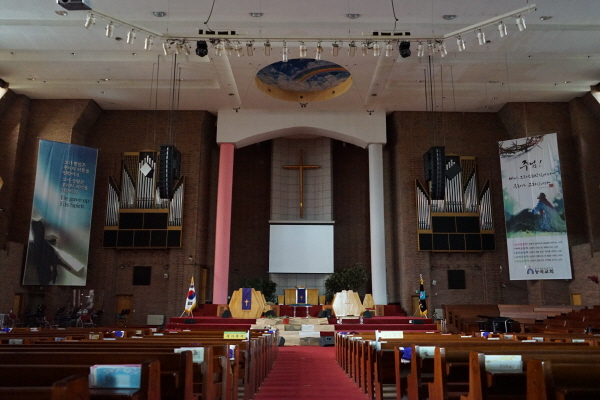 경의중앙선 철길이나 자유로를 지나면서 능곡 방향으로 시선을 돌리면 능곡초등학교 건너편 언덕에 붉은 벽돌로 지은 웅장한 교회가 눈에 띈다. 예배당의 전체적인 외형은 하늘을 향해 모은 두 손의 모양을 모티프로 삼았다. 반대쪽에서 보면 한강을 바라보는 거대한 방주 모양이기도 하다. 123년의 역사를 가진, 고양시에서 가장 오래된 개신교 교회인 능곡교회다. 교회가 세워진 해가 1893년, 조선 말 갑오경장이 시작된 1894년보다도 한 해가 앞선다. 오랜 역사의 두께가 비로소 가늠된다. 3월 6일 창립 123주년 기념예배를 앞두고 있는 능곡교회를 며칠 일찍 찾아가보았다.