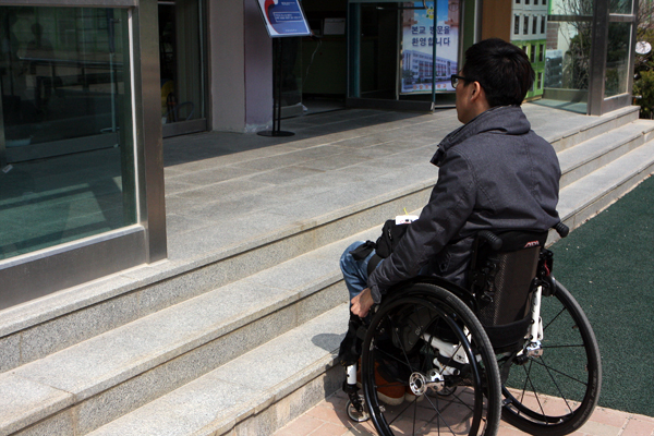 “출입구마다 계단이 있어서 휠체어가 올라갈 수 없어요. 기표소 출입문도 너무 좁은 것 같아요. 이런 식이면 장애인들은 투표를 어떻게 하라는 건지….”