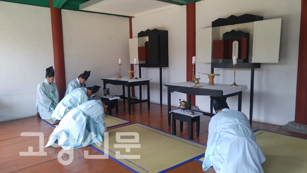 지난 23일, 일산동구 성석동에 있는 용강서원(서원장 이세준)에서 홍살문 개수 고유례가 실시됐다<사진>. 이날 행사에는 고양향교 이영찬 전교, 행주서원 선운영 신임 원장을 비롯해 음성 박씨 문중원들과 고양 유림들이 참석했다.