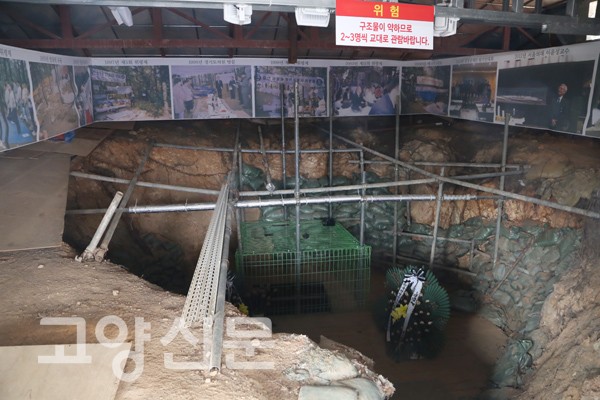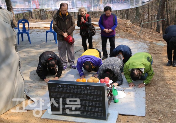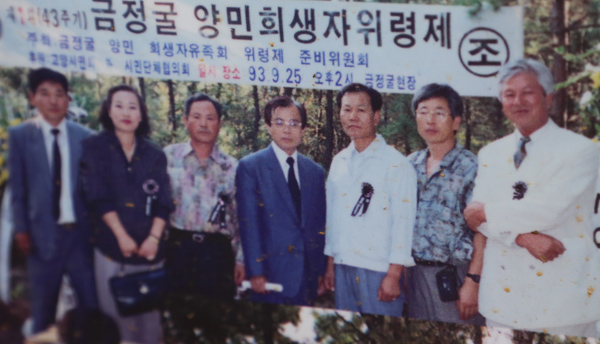 이날 추모비가 세워진 곳에는 1995년 발굴 이후 2001년까지 금정굴 부근에서 발견된 유해가 안치됐다. 채 유족회장은 “이제 늙어 언제 돌아가실지 알 수 없는 유족들의 마지막 바람은 떠도는 유해의 안치”라며 “고양시의 노력이 물거품이 된 이상 가장 합리적이고 유일한 해결책은 우리의 부모형제들이 돌아가신 금정굴 현장 부근에 다시 안치되는 것”이라고 밝혔다.