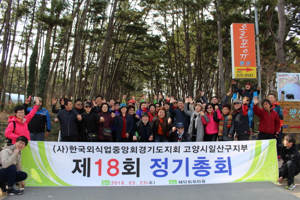 한국 외식업중앙회 고양시 일산구지부(지부장 이광길)는 3월 23일 정기총회를 충남 안면도에서 가졌다. 지금까지 고양 관내 실내에서 진행되던 총회를 야외총회로 기획하였던 이날 회원 85명은 버스 2대에 나눠 타고 안면도에 도착, 한 음식점에서 정기총회에 참석했다. 총회에서는 지부 발전에 기여한 회원 표창과 장학금 수여도 진행됐다. 중앙회장상에는 원가든 능이버섯백숙(원옥미), 경기도지회장상에는 고대원조닭발(최심순), 김양비어 대화점(김한춘), 지부장상 명동칼국수(김무순), 피노(배순교), 바르다김선생 일산후곡점(강미숙)이 수상했고, 이외 고양시장상, 국회의원상 등을 시상했다. 도지회장학금은 매울신짬뽕(손명희) 자녀에게 돌아갔다.