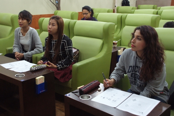 칠판에 쓰여진 예문을 보며 자기 소개를 마친 수강생들이 강사의 지도에 따라 각각 서로 다른 방식으로 인사를 건넨다. 누군가는 합장을 하고, 누군가는 가볍게 포옹을 하고, 누군가는 손을 흔들고... 인사법도 출신 국가도 서로 다르지만, 눈빛들은 하나같이 진지하다. 지난 4일 오후, 장항동에 자리한 렛츠런 문화공감센터 일산지사의 교육장에서는 한국어를 배우는 다문화 이주민 수강생들의 첫 수업이 열렸다. 고양시 다문화가족지원센터 한국어교실의 첫걸음반 수강생들로서, 렛츠런 일산지사의 배려로 정규 수업 외 추가 보충수업을 갖게 된 것이다.