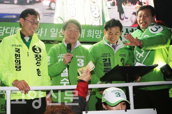 이날 안철수 대표는 "이번 선거는 낡은 것을 그대로 둘 것인지 아니면 새로운 것으로 바꿀 건지를 고양시민이 직접 결정하는 선거로, 싸움만 하는 1번, 2번에게 표를 몰아주지 말고 국민의당을 지지해 달라"고 호소했습니다.