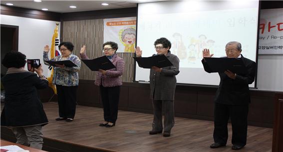 고양시 베이비부머 사회참여대학 4기 리플아카데미 입학식이 지난 4일 고양시새마을회관에서 열렸다. 리플아카데미는 고양시 베이비부머를 대상으로 사회공헌, 재취업, 일자리 관련 교육프로그램을 제공함으로써 베이비부머세대의 사회참여 기회를 제공하고 지역사회에 자원봉사로 기여할 수 있는 고양실버인력뱅크의 교육사업이다.