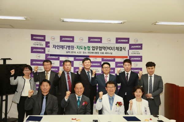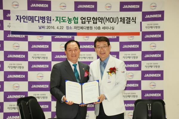 덕양구 행신동에 위치한 자인메디병원에서 열린 이날 협약식에서 지도농협 장순복조합장과 자인메디병원 김병헌 병원장은 양 기관의 상호발전을 위해 지속적으로 협력하는 등의 내용을 담은 업무 제휴 협약에 서명을 했다.