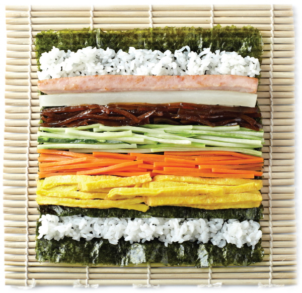 주재료 중 하나인 단무지는 사카린 나트륨, L-글루타민산나트륨, 합성보존제, 표백제, 빙초산을 사용하지 않은 백단무지를 넣는다. 참기름은 찜누름 방식으로 참깨의 고소함을 살려 쓴다. HACCP인증청정농장의 건강한 닭이 낳은 무항생제달걀에, 남해 청정지역에서 자란 엄선된 원초로 만들어 두 번 구운 김을 사용한다. 나트륨함량을 줄인 저염햄, 무기질 함량이 풍부한 남해안 간척지 쌀 등 재료 하나하나 허투루 쓰는 게 없다.