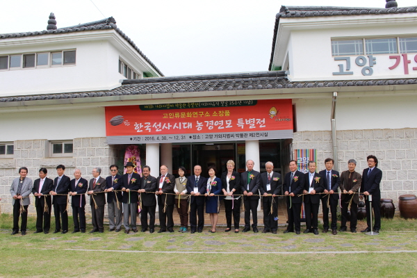 다음날에는 고양시 농업기술센터 내에 자리 잡고 있는 고양 가와지볍씨 박물관 특별전 오프닝 커팅식을 했다. 이번 전시는 ‘가와지 유적 발굴 25주년 기념 고인류 문화연구소 소장품 한국선사시대 농경연모특별전’으로 박물관에 어울리도록 돌칼과 볍씨가 달린 새끼줄로 커팅식을 했다. 이 전시에는 140배로 확대한 박물관 상징물 볍씨와 더불어 갈돌과 갈판, 돌낫, 뼈낫, 곰배괭이, 돌보습, 돌대 등이 전시됐다. 이번 특별전은 올 연말까지 열린다.