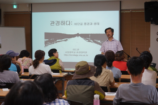 강의의 말미에 이도원 교수는 자신의 다양한 도보 출근길 코스를 소개하면서 ‘생활 속의 생태학’을 간단히 소개하는 것도 잊지 않았다. “승용차로 출근하면 아무것도 못 보고, 버스로 출근하면 조금 보이고, 걸어서 출근하면 세상이 훨씬 많이 보이지요. 우리를 둘러싼 세상을 천천히 관찰하는 것이 생태학의 시작입니다.”