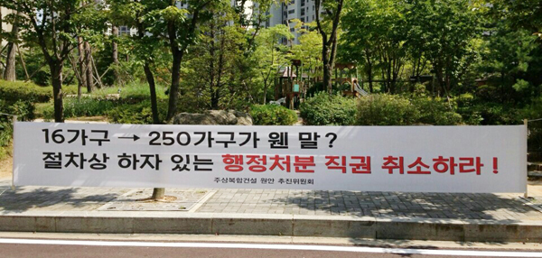2014년 8월 주민설명회에 참여했다는 한 주민은 “개발 승인 전 유일한 설명회였지만 당시 16세대를 250세대로 늘린다는 내용은 자세히 듣지도 못했다”며 “그런 내용이 있었다 하더라도 주민들이 인지할 수 없는 수준이었을 것”이라고 억울해 했다.