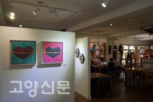 갤러리카페 밀은 3년 전 문을 열었다. 그동안 매해 10여 차례 다양한 장르의 크고 작은 전시를 열었다. 주로 전시공간이 절실한 실력 있는 신진 작가들이 기회를 얻었다. 카페 대표 겸 갤러리 관장인 윤선혜 관장은 사실 오랫동안 일산에서 이름난 입시미술학원을 운영했다. 미술과 관련된 새로운 사업을 찾다가 갤러리카페를 열게 됐다. 신진 작가들에게는 전시공간을 제공하고, 일반인들에게는 보다 가까이서 예술을 대하는 기회를 제공해주고 싶어서다. 처음에는 카페에 전시공간이 있다는 게 낯설어 문을 열었다가 되돌아나가는 손님들도 있었지만, 지금은 오히려 새로운 전시 날짜를 기다렸다가 새로운 작품을 만나러 오는 손님들도 많다. 상업공간과 미술 전시공간을 균형 있게 운영하며 예술에 대한 관심을 지속시켜나가는 윤선혜 관장의 내공이 만만찮아 보인다.