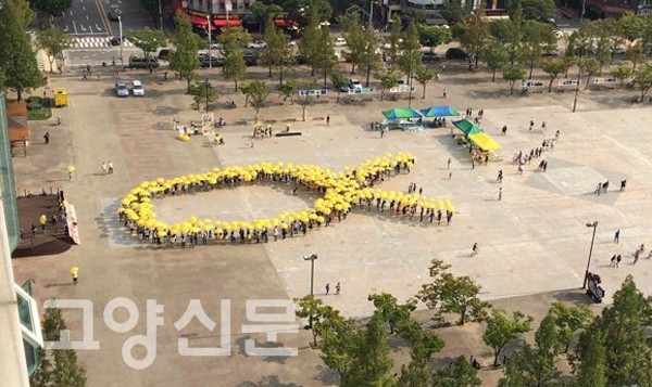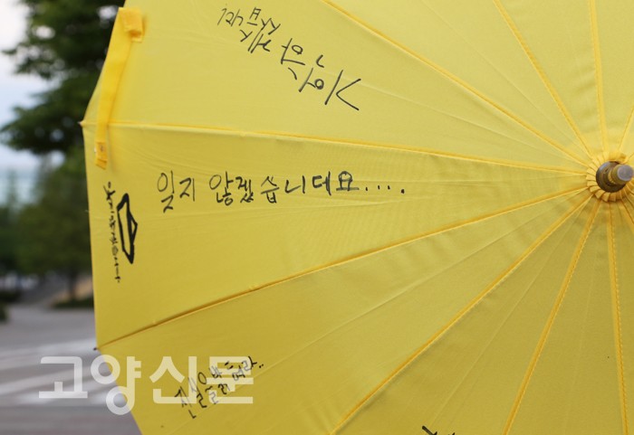 [고양신문] 세월호 희생자 수에 맞춘 304개의 우산이 지난 3일 일산문화공원을 수놓았다. 세월호 희생자 가족에게 위로를 전하고, 세월호 참사에 대한 진실이 밝혀지길 바라는 마음에서 마련된 ‘노란우산 프로젝트’가 고양시 일산문화공원에서 열렸다.