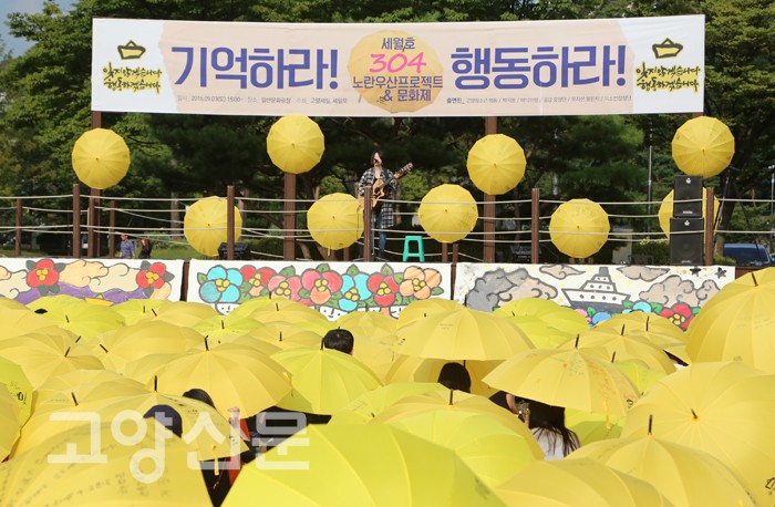 오후 3시부터 1시간가량 진행된 우산 퍼포먼스 이후 고양청소년행동, 하늬바람, 공감중창단, 박지원, 뮤지션 불핀치 등이 출연한 문화제가 오후 6시까지 진행됐다.