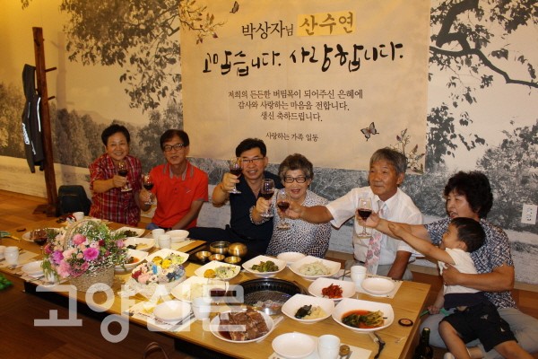 행신동 김광성 미광리폼하우스 대표가 지난달 27일 어머니(박상자) 팔순잔치를 열었다. 대자동 강강술래 늘봄농원점에서 진행된 이날 잔치에는 5남2녀 자손과 친척 등 60여 명이 자리를 함께했다. 강강술래 늘봄농원점은 이번 잔치를 위해 미역국을 준비하고 와인도 제공해 잔치 분위기를 북돋웠다.