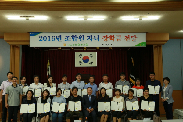 지도농협(조합장 장순복)은 12일 오전 지도농협 본점 2층 대회의실에서 임직원들과 장학생, 학부모 등 30여 명이 참석한 가운데 조합원 자녀 장학금 전달식을 가졌다. 이번 장학금 지급을 위해 지도농협은 조합원 자녀 중 학업이 우수하고 품행이 바른 학생을 엄정한 기준으로 심사해 고등학생 5명, 대학생 24명 등 총 29명을 장학금 수혜 대상자로 선정했다. 선정된 학생들에게는 고등학생 1인당 40만원, 대학생 1인당 100만원씩 총 2600만원을 지급했다.