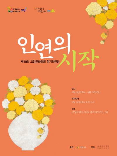 고양시민화협회(회장 김정호)는 오는 20일~24일 고양아람누리 갤러리누리 1~2관에서 제10회 고양민화협회 정기회원전을 연다. 이번 전시의 주제는 ‘인연의 시작’이다. 전통민화의 바른 이해와 주변 확대‧보급을 위해 노력하는 고양민화는 고양시의 많은 학교 동아리와 학습부적응 학생과 함께하며 민화를 알리고 있다.