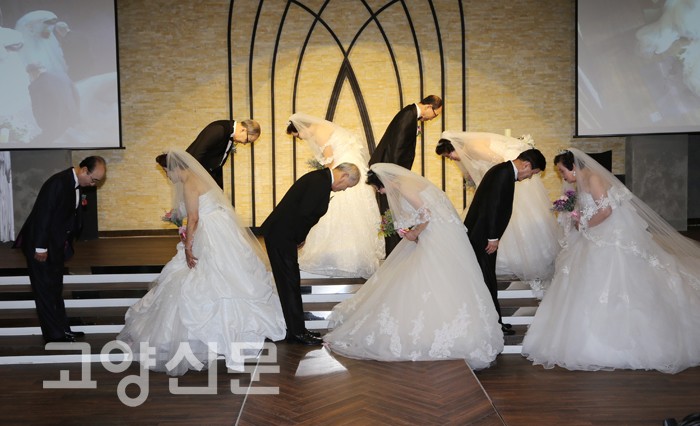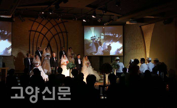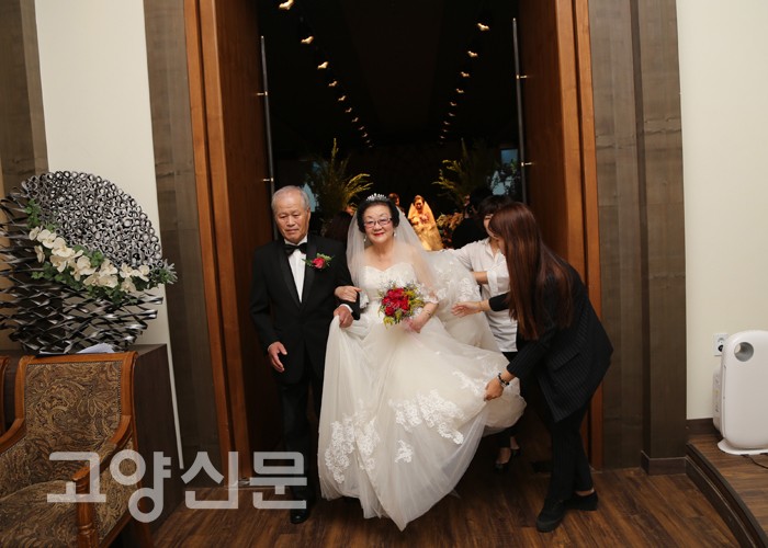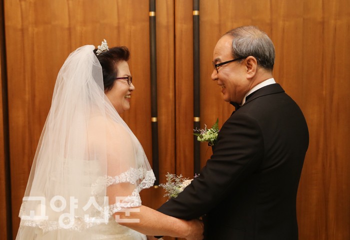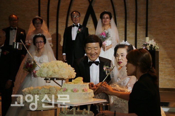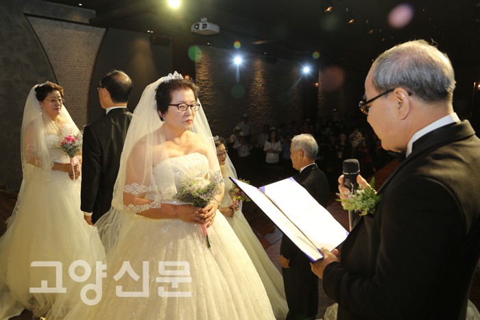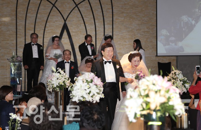 [고양신문] 지난 20일 고양실버인력뱅크는 고양시 마두동 JJ웨딩홀에서 지역 어르신부부 다섯 쌍을 모시고 리마인드 결혼식을 진행했다.