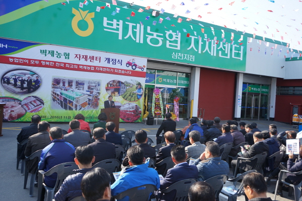 고양시 벽제농협(조합장 이승엽)이 2일 심천지점 마당에서 영농자재센터 개점식을 열었다. 100여 명의 임직원과 대의원들이 참석한 이날 개점식에는 김필례, 김혜련 시의원과 영농자재생산업체 대표 등 많은 내외빈들도 자리를 함께하며 벽제농협 영농자재센터의 힘찬 첫걸음을 축하했다.