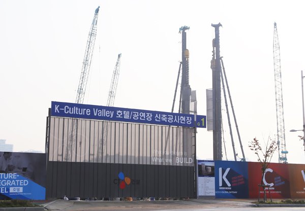 공연장을 포함한 숙박시설 용지는 지난 9월부터 착공이 되어 현재 공사가 진행되고 있지만 테마파크 용지와 상업시설 용지는 착공이 이뤄지지 않고 있다. 숙박시설 용지에는 20층 높이의 호텔과 7층 높이의 공연장이 세워질 계획이다. 고광춘 경기도 한류월드 사업단장은 “CJ가 미국의 전문회사에 테마파크 설계를 맡겼는데 이 설계가 나온 이후 테마파크 용지는 착공에 들어간다”고 밝혔다.