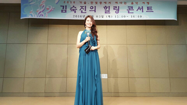 김숙진의 힐링콘서트는 전국 국립공원, 병원, 구치소 등에서 공연된다.