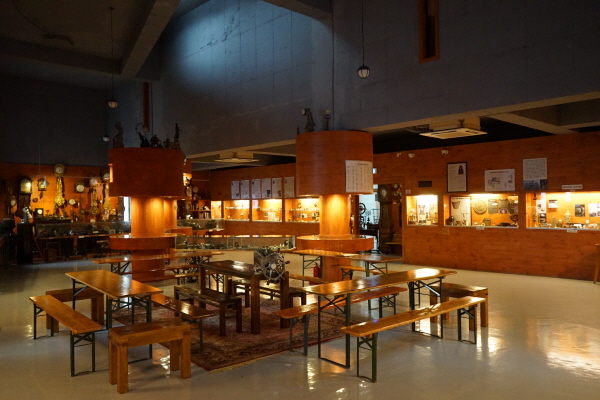 박물관 입구 위에는 거대한 시계를 짊어진 아틀라스 조각상이 방문객을 맞는다. 지구의 자리를 시계가 대신하고 있는 셈이다. 문을 열고 들어서니 넓고 웅장한 진열 공간을 1천여 점 수집품이 가득 메우고 있다. 1층은 시계의 집이다. 시계의 조상 격인 해시계와 물시계도 있지만, 가장 많은 수를 차지하는 건 역시 태엽이나 추를 동력으로 삼는 기계식 시계들이다. 기계식 시계의 발전 단계를 따라 괘종시계, 탁상시계, 회중시계, 그리고 손목시계를 살필 수 있다. 기술의 발달과 함께 시계의 크기는 점점 작아지고, 휴대는 간편해졌다. 시계의 역사는 고스란히 ‘통일된 시간’이라는 근대적 개념이 사람들의 일상 속에 파고 든 역사라 할 수 있다.