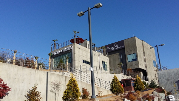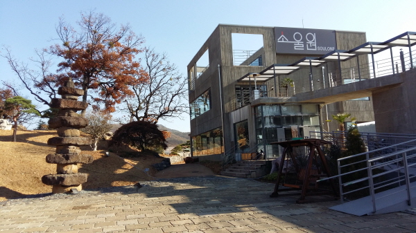 소울원을 찾아가는 길은 좀 낯설었다. 자유로를 따라 이어지는 파주출판도시, 헤이리예술마을, 임진각 평화누리와 멀지 않은 위치지만, 농경지 사이로 크고 작은 공장과 창고 건물들이 교대로 나타나는 국도를 따라 잠시 달려야 하기 때문이다. 탄현면사무소(고양시 탄현동 말고 파주 탄현!) 삼거리에서 축현리 방향으로 핸들을 꺾으니 길은 더 좁아진다. 이런 평범한 동네에 명품정원이 있기나 한 걸까, 의아해 질 때쯤 불쑥 소울원이 나타난다. 주차장에 차를 세우니 작은 언덕 위로 카페와 레스토랑이 있는 모던한 디자인의 건물이 보인다. 건물까지 오르는 긴 경사로 역시 자갈과 시멘트로 세련되게 장식됐다.