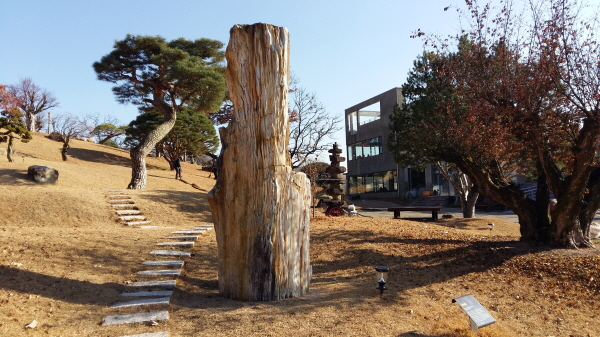 나무의 매력과 돌의 매력을 한꺼번에 대할 수 있는 흔치 않은 전시물도 있다. 바로 나무 화석이다. 죽은 나무가 뻘이나 화산재 등에 매몰되어 오랜 시간이 흐르면서 토양 속의 광물질이 목질 부분을 채워 만들어지는 나무 화석은 자연의 오묘함과 광대한 시간의 우직함이 합작으로 만들어 낸 걸작이다. 고급지고 귀한 나무 화석이지만 소울원에선 넓은 탁자 모양의 일부 나무화석에 친절하게도 ‘위에 앉아서 편하게 감상하라’는 안내문까지 붙여놓았다.