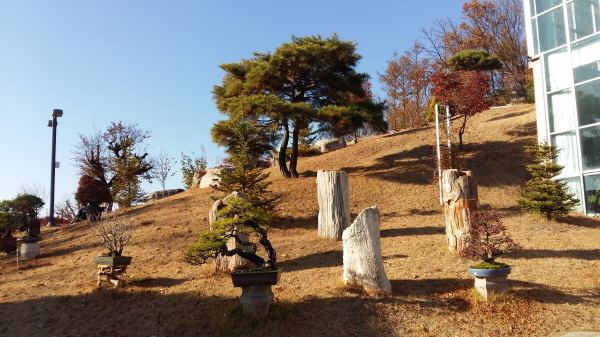 나무부터 살펴보자. 나무마다 붙은 설명이 상투적이지 않다. 수령 400년이 됐다는 산수유 나무에는 ‘비틀린 몸통과 억세게 뻗은 가지가 작은 아프리카를 보여주듯 원시성을 내뿜고 있다’는 설명이 붙었고, 친근한 느티나무에도 ‘열심히 세사을 살아가는 소시민을 보는 듯하다’는 이야기를 적어놨다. 정원 한 켠을 장식하고 있는 소나무와 홍공작단풍도 기품과 멋이 넘친다. 철쭉과 주목, 향나무 등 상대적으로 크기가 작은 나무들은 화분에 자리를 잡았다. 일반적으로 분재, 하면 떠오르는 작고 소박한 사이즈와는 달리 규모와 형체가 탁월해 굳세고 당당한 기운마저 풍긴다. 살아서 천 년, 죽어 천 년을 간다는 주목 분재는 살아있는 물관과 죽은 사리 부분이 뒤엉켜 신비로움마저 자아낸다. 소울원에 자리한 명품 나무들의 나이를 모두 합산하면 자그마치 25,000살에 이른단다. 한 계절의 떠나감을 섭섭해 하는 나들이꾼의 알량한 시간감각으론 감히 실감이 안 되는 세월이다.