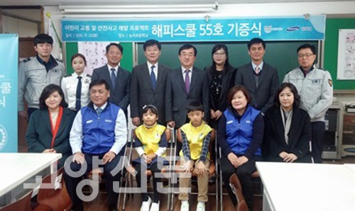 [고양신문] 고양시 능곡초등학교(교장 채양석)가 지난 22일 교내에 어린이 교통안전체험관을 설치하고 해피스쿨 기증식을 가졌다.